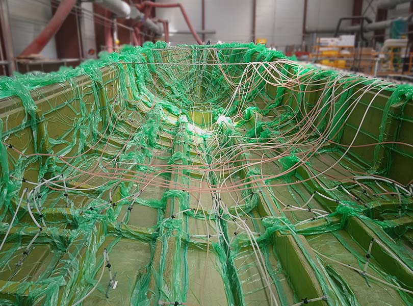 Vacuum bagging and infusion for epoxy resin enable the production of lightweight, strong, and homogeneous composites. Using suitable consumables (peel ply, breather fabrics, films, infusion meshes), these processes ensure optimal impregnation, an excellent resin-to-fiber ratio, and a high-quality finish. Widely used in marine, industrial, sports, and aerospace applications.